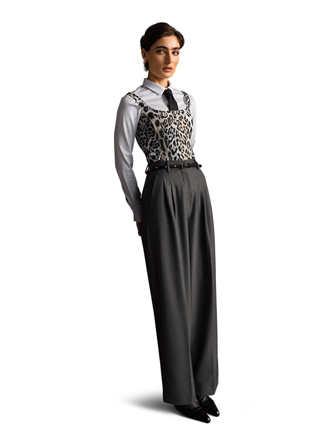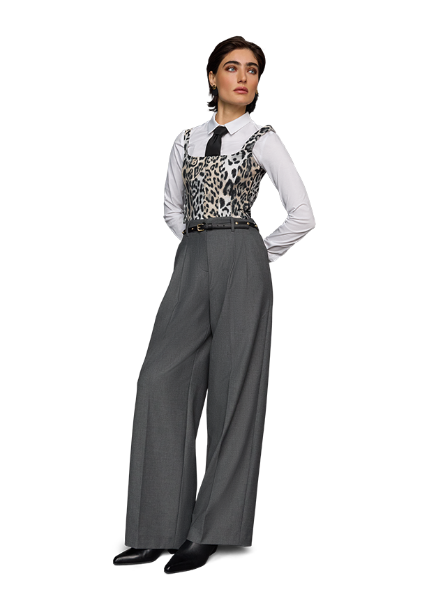 Die RIANI Anzugshose mit weitem Bein überzeugt mit weitem Schnitt und hochwertiger Verarbeitung – perfekt für alle, die Komfort und Stil gleichermaßen schätzen. Die locker fallende Silhouette sorgt für Bewegungsfreiheit und verleiht jedem Look eine entspannte, zugleich elegante Note. Ob im Büro oder beim City-Look, kombiniert mit Blazer oder feinem Oberteil, ist diese Hose ein vielseitiges Premium-Piece für modebewusste RIANISTAs.