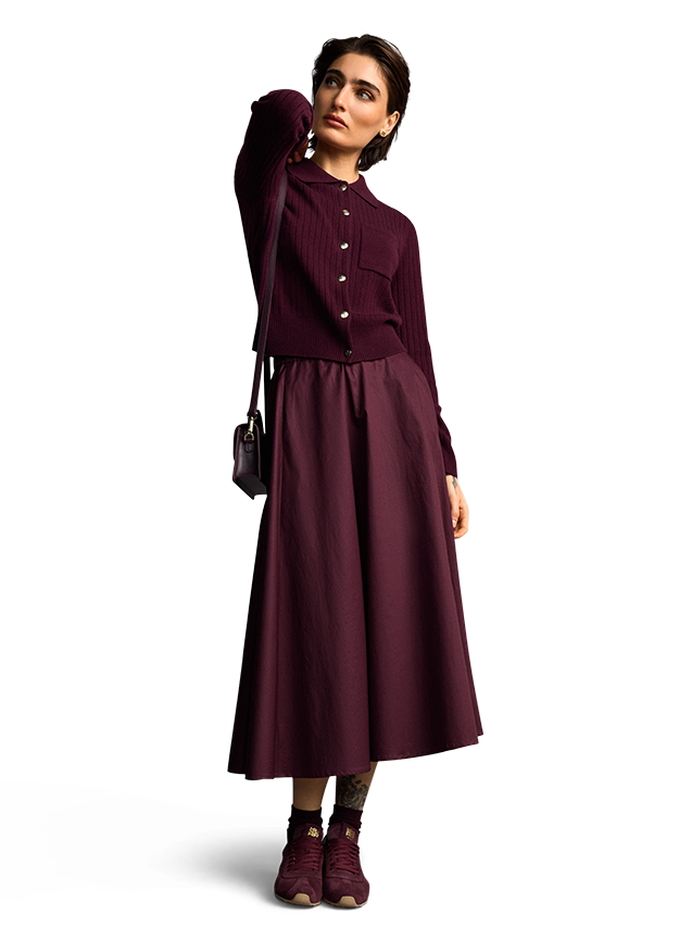 Unser Model ist 178 cm groß und trägt Größe 36.