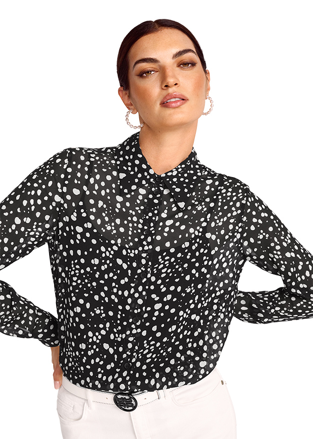 RIANI Spirit. Trendiges Punktedessin macht aus der Hemdbluse ein modisches Styling-Piece und einen echten Blickfang. Gefertigt ist sie aus reiner, recycelter Viskose – ein Pluspunkt für Tragekomfort und Nachhaltigkeit. Vom Design her klassisch angelegt, ergibt sich mit Stoff und Druck ein spannender Twist. So spannend, dass die Bluse jedem Outfit den gewissen Pfiff verleiht.