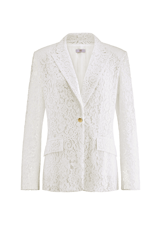 Der Star Deiner Garderobe! Dieser klassische Blazer von RIANI erhält durch seinen einzigartigen Spitzenstoff eine aufregende Wendung. Mit seinem schlichten Einreiher, Pattentaschen und der klassischen Silhouette bleibt er zeitlos, während die durchscheinenden Ärmel dem Look einen Hauch von Extravaganz verleihen. Die feine Spitze verwandelt das sonst so schlichte Design in ein echtes Statement Piece. Kombiniere ihn mit der passenden Spitzenhose für einen glamourösen Auftritt, der alle Blicke auf sich zieht!