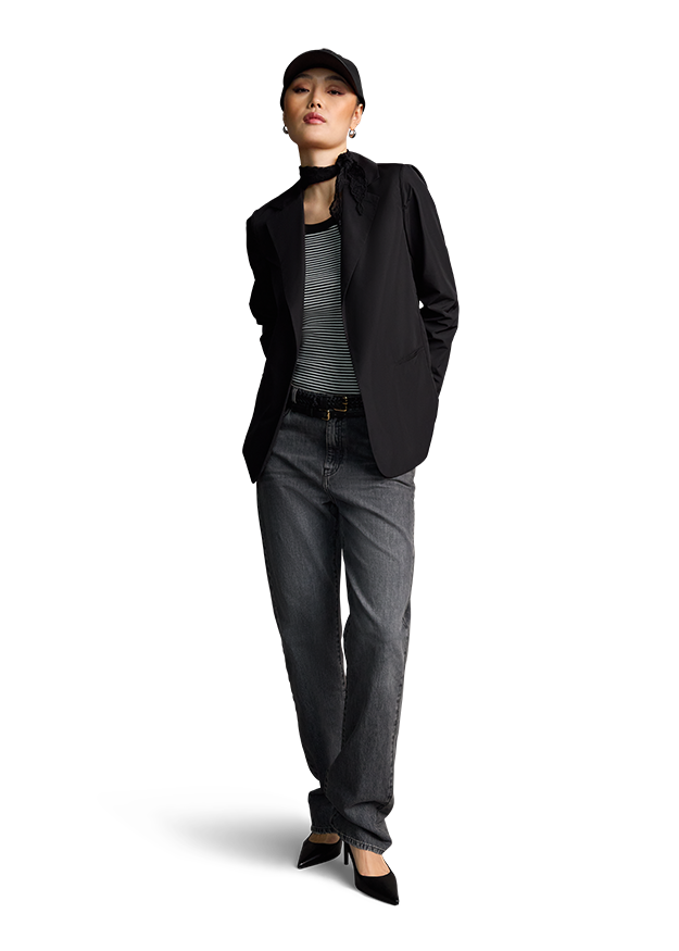 Unser Model ist 178 cm groß und trägt Größe 36.