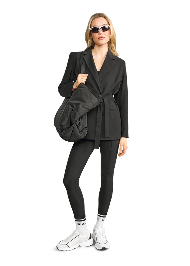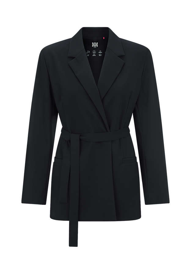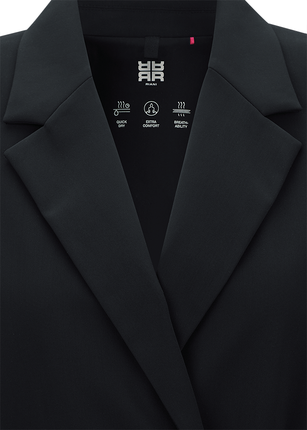 Der RIANI ON THE GO Blazer vereint smarte Eleganz mit funktionalem Komfort – perfekt für einen aktiven Lifestyle. Aus hochwertigem Active Jersey gefertigt, überzeugt er durch sein softes Techno-Material und seine Easy Care-Eigenschaften: schnelltrocknend, knitterfrei und atmungsaktiv. Der taillierte Schnitt mit Bindegürtel sorgt für eine feminine Silhouette, während das flexible Material maximale Bewegungsfreiheit bietet. Ob Travel, City oder Business – dieser Blazer ist Dein stylischer Allrounder mit Extra-Komfort.