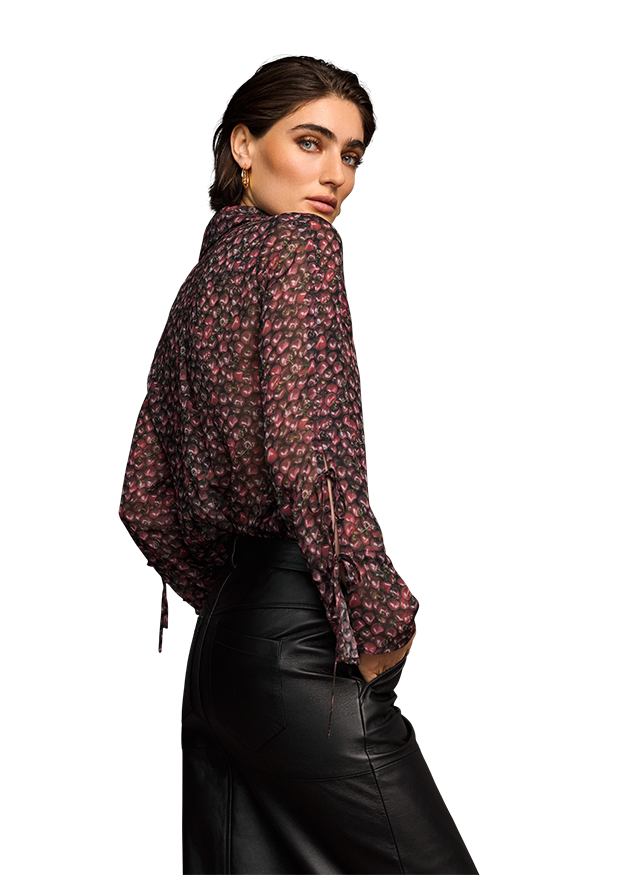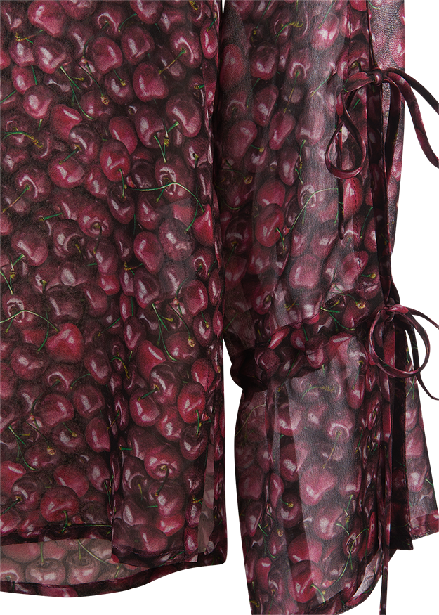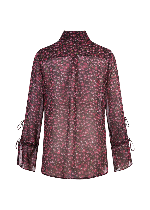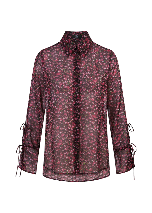 Very Cherry! Dieser feminine Kirschen-Print macht Dein Outfit zum Hingucker. Verspielte Ärmeldetails und das halbtransparente Material verleihen der klassisch geschnittenen RIANI Bluse mit durchgehender Knopfleiste eine besondere Note. Besonders toll in Kombination mit unserem Lederrock aus Lammnappa – ein Look, der charmant, modern und unverwechselbar ist!