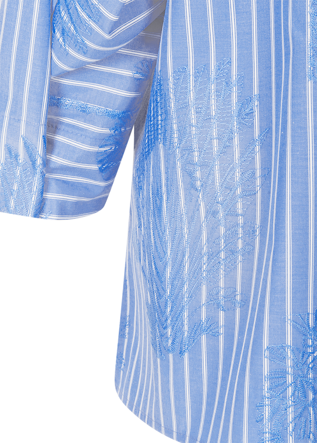 Dein neuer Sommer-Favorit wartet auf Dich! Diese vielseitige RIANI Hemdbluse ist nicht nur unglaublich bequem, sondern auch ein echter Hingucker. Die Kombination aus trendigen Streifen und aufgestickten Palmen sorgt für einen frischen, sommerlichen Look. Ob im Büro oder in der Freizeit - mit dieser hochwertigen Bluse bist Du immer bestens gekleidet!
