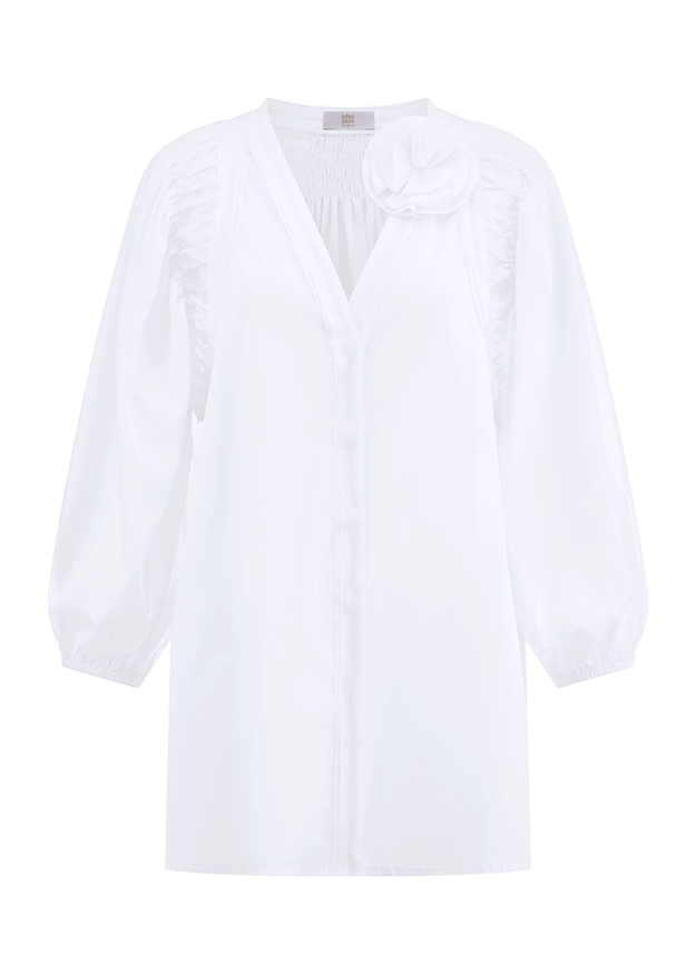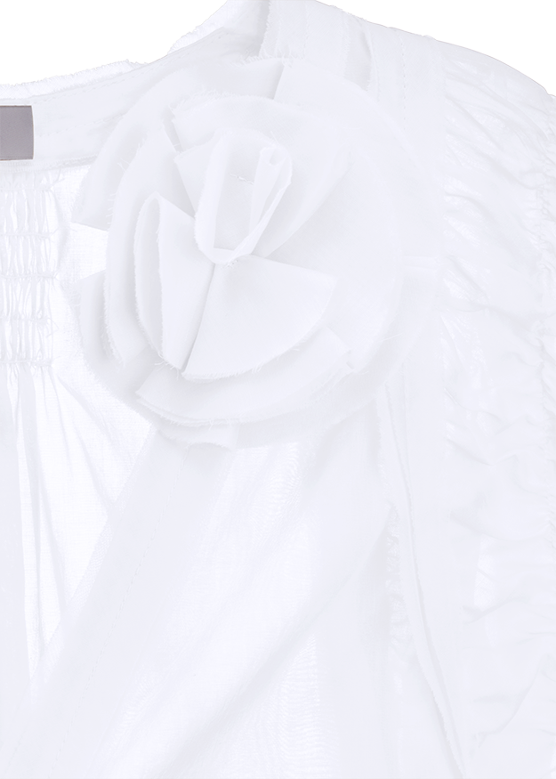 Verspielte Details treffen auf elegante Linien! Das Rosendetail und die Ballonärmel machen diese Cotton Voile Bluse zum absoluten Hingucker im RIANI Onlineshop. Aus 100% Baumwolle gefertigt, ist sie nicht nur ein Sommer-Must-have, sondern überzeugt auch mit ihrer Leichtigkeit und dem klaren Design. Ob zum Aufwerten des Alltagslooks oder für besondere Anlässe – diese Premium Bluse ist ein vielseitiges Fashion-Statement.