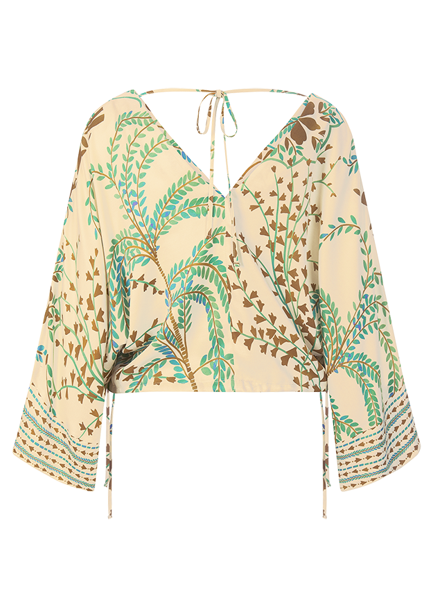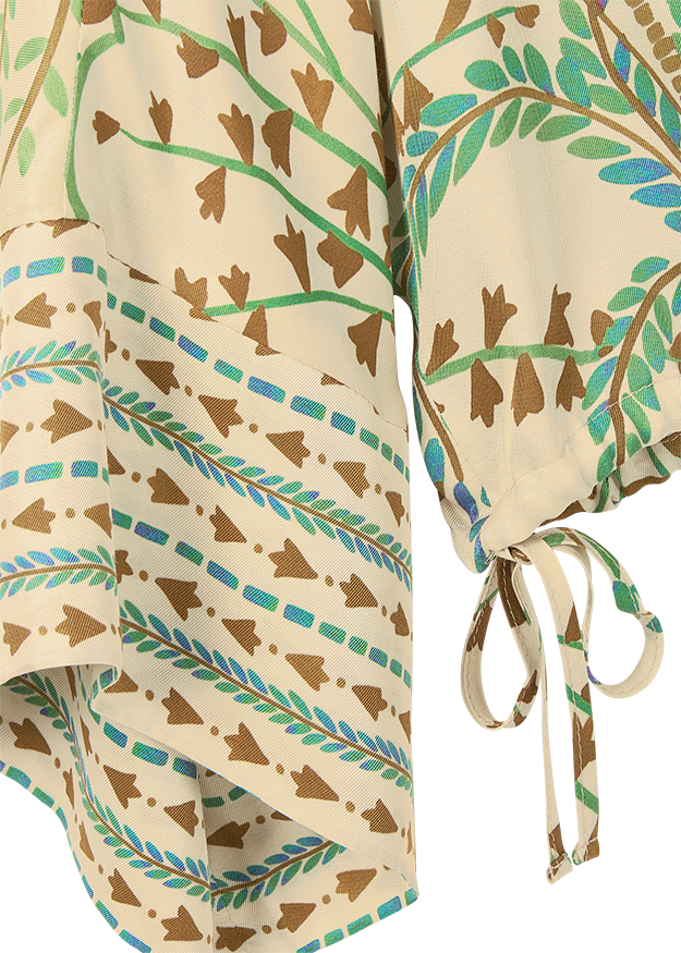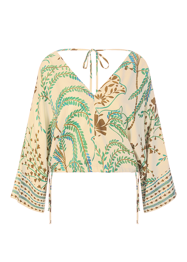 Tropical Summer im Stencil Print! Diese RIANI-Bluse mit V-Ausschnitt und seitlichen Bändern begeistert mit ihrer fröhlichen, natürlichen Frische. Der lebendige Print und die umweltfreundliche Eco Vero Viscose verleihen ihr nicht nur einen stylischen Look, sondern auch ein gutes Gewissen. Ganz nach dem Motto: Eco Glam!