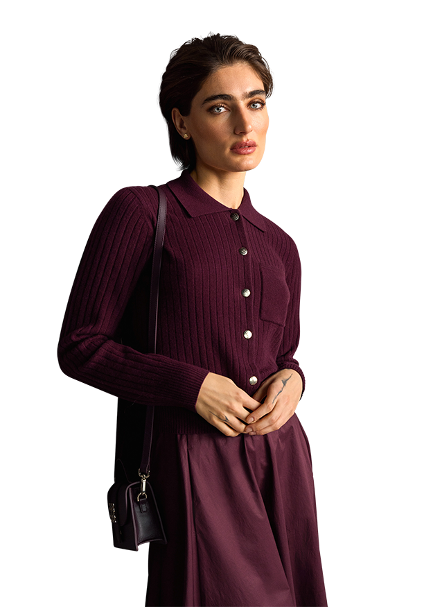 Unser Model ist 177 cm groß und trägt Größe 36.