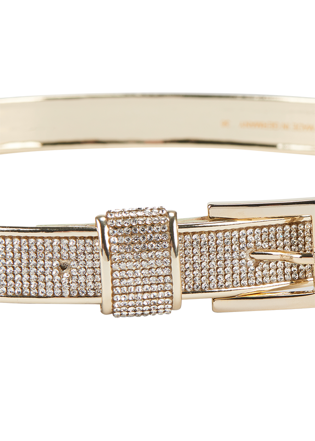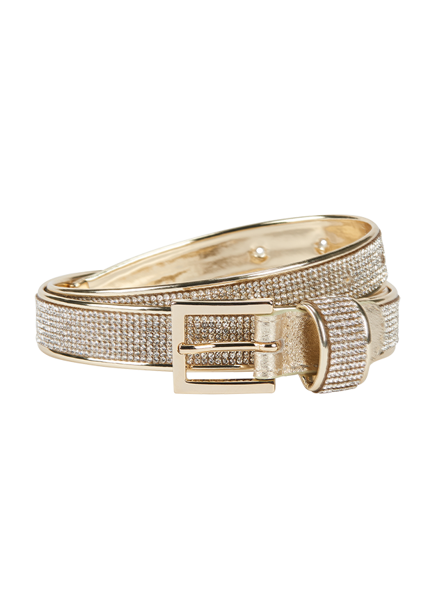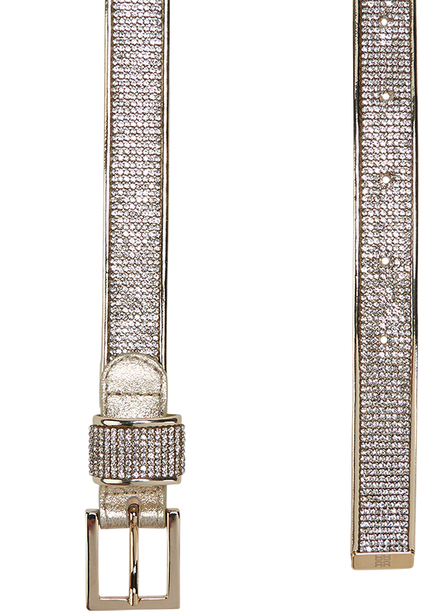 Ein Hauch von Luxus für deinen Look: Dieser schmale Ledergürtel ist mit glitzernden Strasssteinen besetzt und sorgt für einen funkelnden Akzent. Die elegante Schnalle und der eingefasste Rand fallen darüber hinaus ins Auge. Ob zum eleganten Anlassensemble oder als upgrade zum Casual-Look – dieser Gürtel ist ein Must-have.