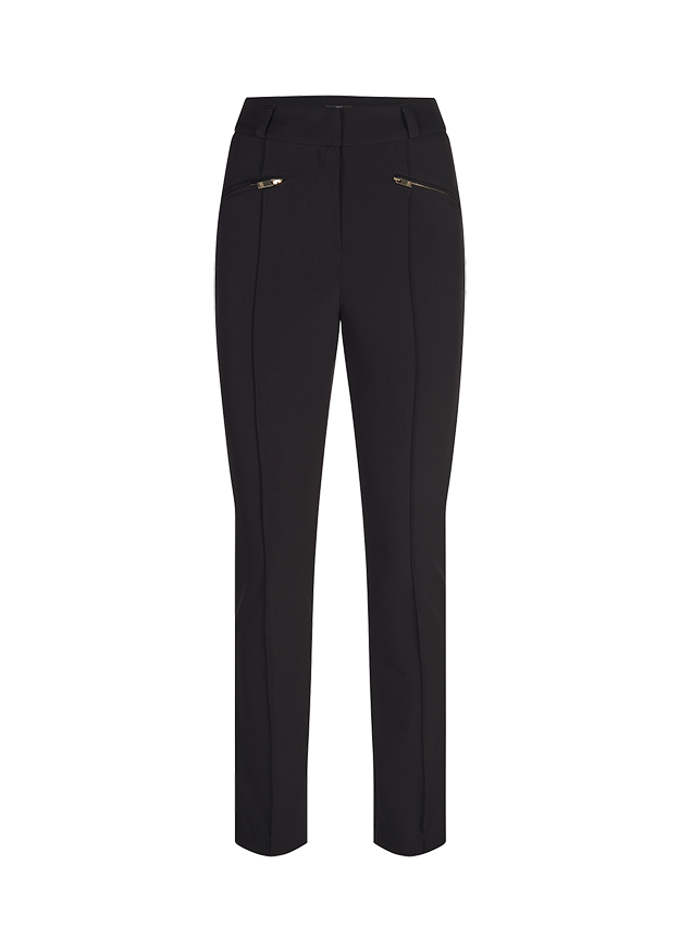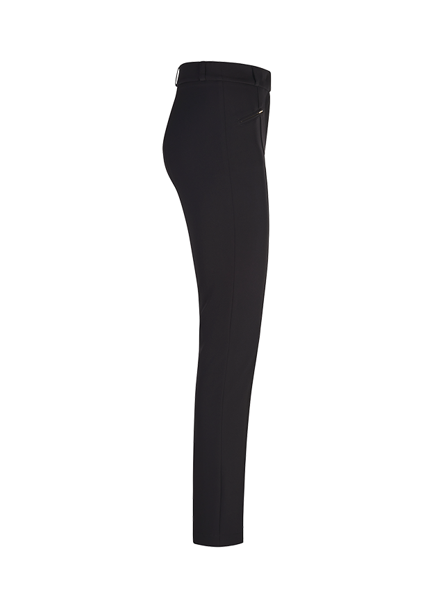 Die schwarze Hose im bequemen Casual Fit überzeugt als vielseitiger Alltags-Favorit. Das Highlight ist der hochwertige Stoff mit seiner weichen, elastischen Oberfläche, der für optimalen Tragekomfort sorgt. Die minimalistische Eleganz macht sie nicht nur zu einem sportiven Begleiter, sondern auch bürotauglich. Ob lässig kombiniert oder als Teil eines monochromen Looks – dieses Basic ist ein Must-have für jede Garderobe.