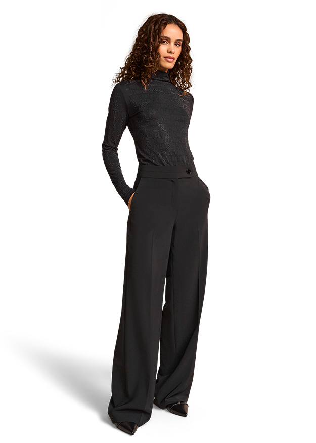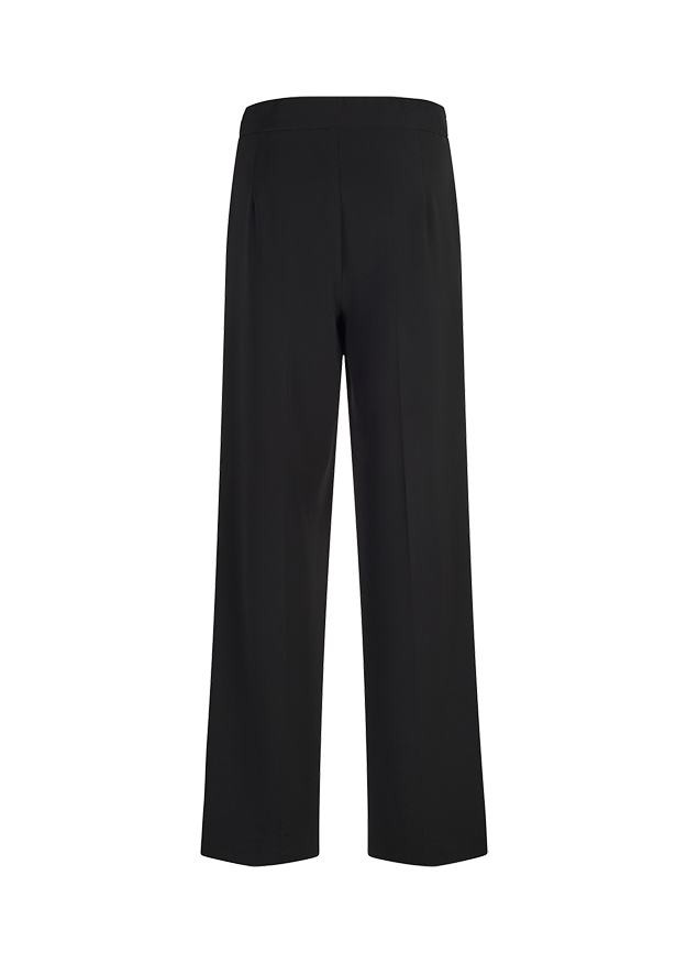 Lässig-elegante Wide-Fit-Hose, die durch das qualitätsvolle, elastische Material hohen Tragekomfort bietet. Riegelverschluss, Bügelfalten und die schrägen Eingrifftaschen setzen dazu elegante Akzente. Ein schickes Basic für den modernen, selbstbewussten Look – ganz gleichgültig, ob für Alltag, Business oder ein besonderes Event.
