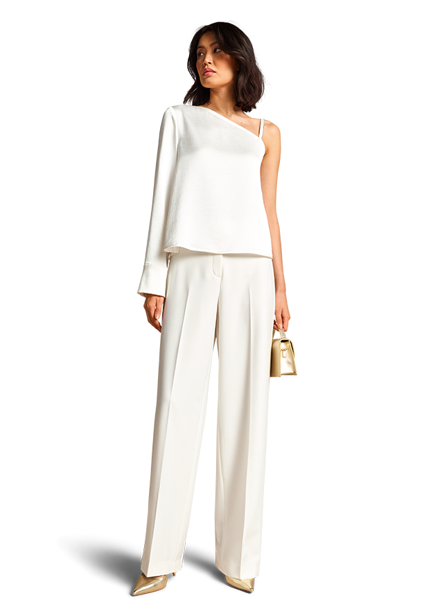 Unsere Wahl zwischen Eleganz und Komfort heißt: Wir nehmen beides! Schließlich kann man nie wissen, was der Tag so bringt. Dank des elastischen, edel wirkenden Stoffes begleitet uns diese weit geschnittene Hose – mit Bügelfalten und Riegel am Bund – bequem und chic: von langen Büro-Meetings über einen Gang durch die City bis zum abendlichen Event.