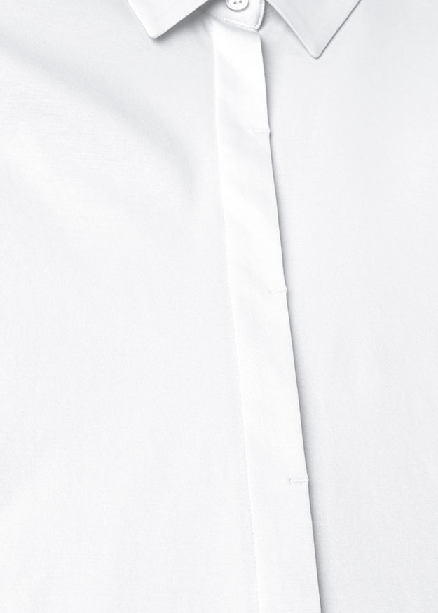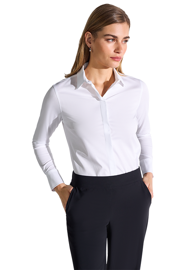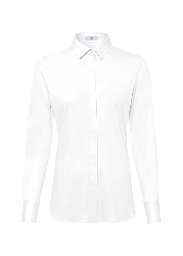 Die unifarbene RIANI Hemdbluse überzeugt mit klassischem Kentkragen und klar taillierter Linie. Der großzügig gerundete Saum und die verdeckte Knopfleiste sorgen für puristische Eleganz. Hochwertig verarbeitet, ist sie die perfekte Basis für stilvolle Büro- und Freizeitlooks.