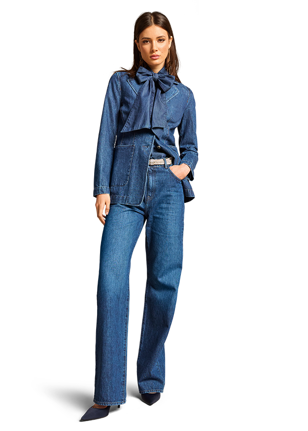 Unser Model ist 180 cm groß und trägt Größe 36.