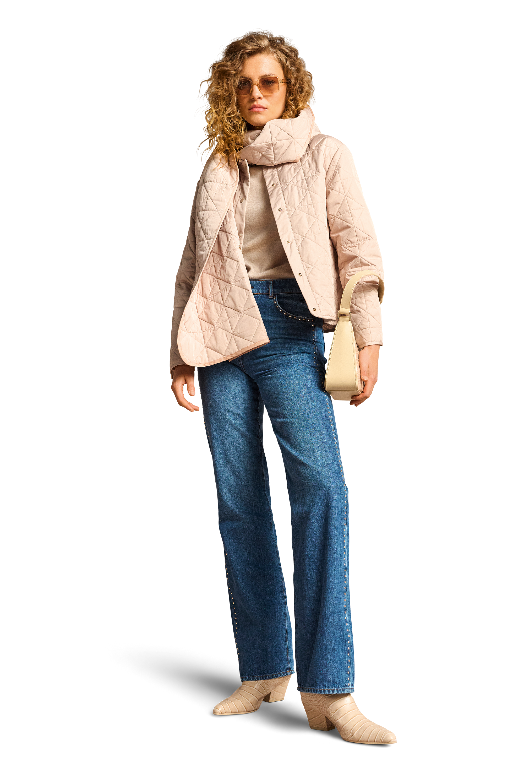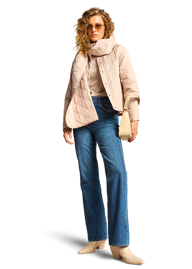 Unser Model ist 180 cm groß und trägt Größe 36.