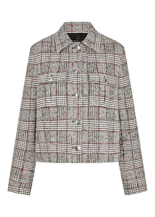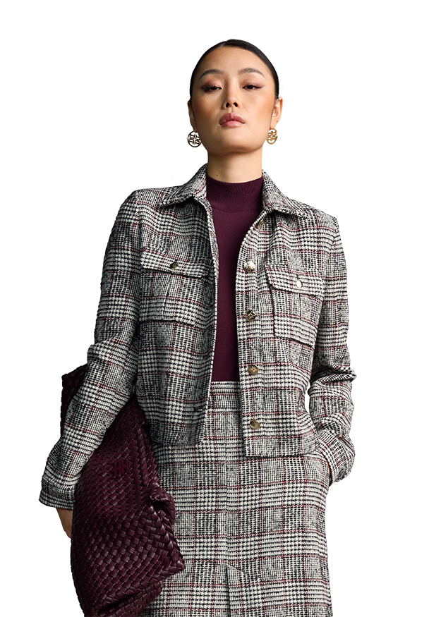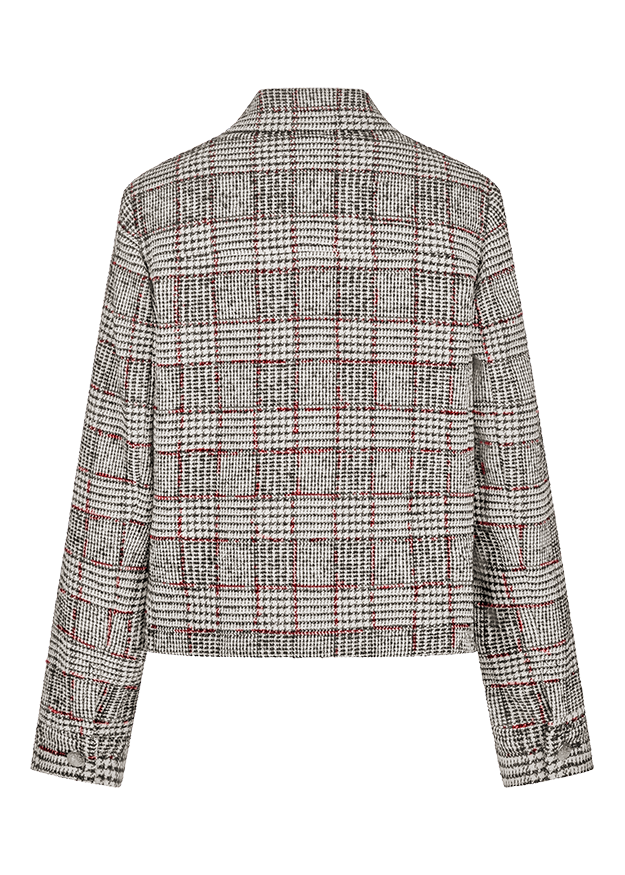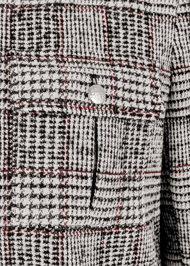Ein Fashion Piece, das begeistert! Die lässige Jacke im klassischen Glencheck-Muster in Schwarz-Weiß, kombiniert mit der Trendfarbe Morello, ist ein absolutes Highlight. Gefertigt aus einer hochwertigen, weichen Baumwollmischung, bietet es nicht nur höchsten Tragekomfort, sondern auch genau die richtige Portion Wärme für Deine Herbst-Looks. Ideal für ready-to-wear-Styles – vielseitig, bequem und immer ein Hingucker!