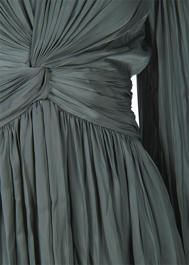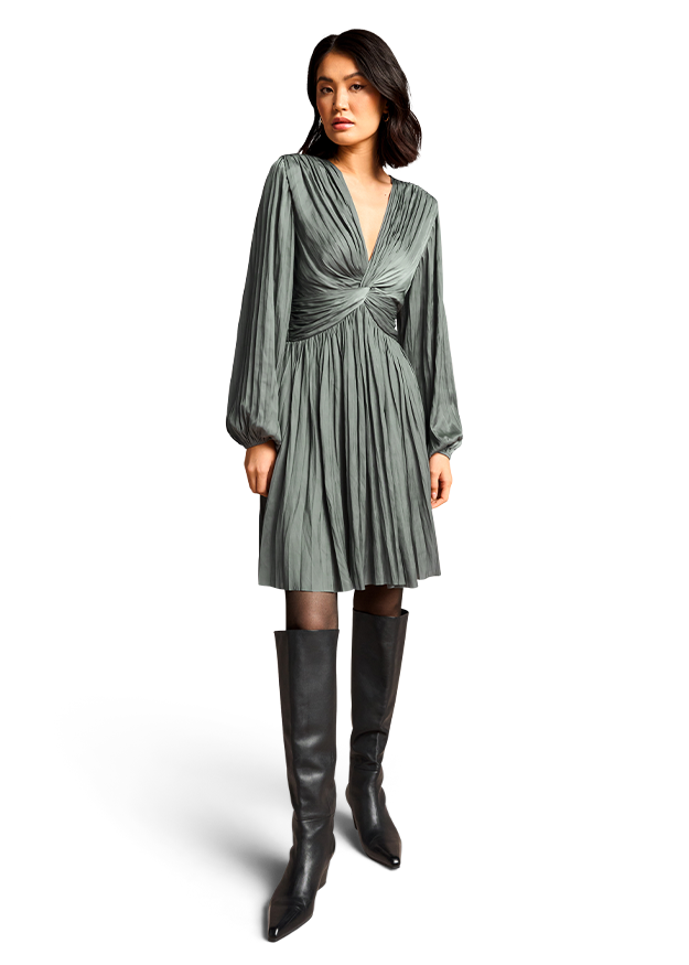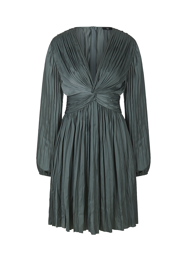 Luxury Fashion! Sensationelles Anlasskleid mit modischem Knotenelement, bauschigen Ärmeln und stylisher Faltentechnik. Der feine, fließende Technosatin unterstützt den Eindruck von Leichtigkeit und bringt die Farbe wunderbar zur Geltung. Durch den tiefen V-Ausschnitt und die trendige Länge erhält das Kleid zusätzlich einen femininen, sexy Touch.
