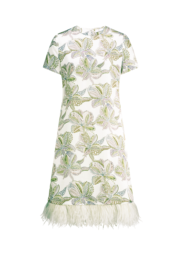 Ein echter Blickfang! Das stylische Kleid überzeugt mit einem klaren, geraden Schnitt, Rundhalsausschnitt und kurzen Ärmel. Ein minimalistisches RIANI Must-have, während Fransen am Saum und der Desert Rose Print lebendige Akzente setzen. Perfekt für besondere Anlässe – chic und raffiniert.lockrere SchnittLänge: 90cm bei Größe 36Schulterbreite: 40cm bei Größe 36