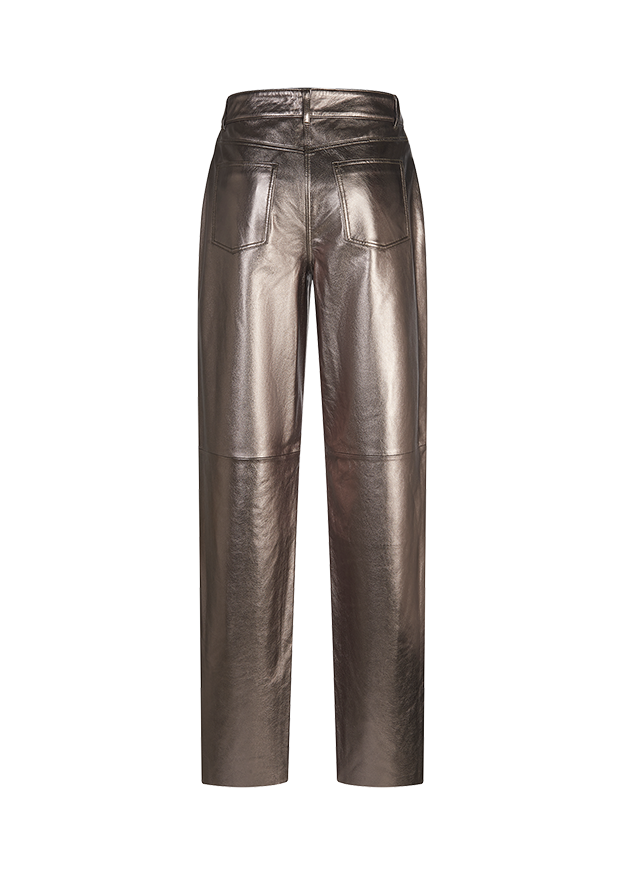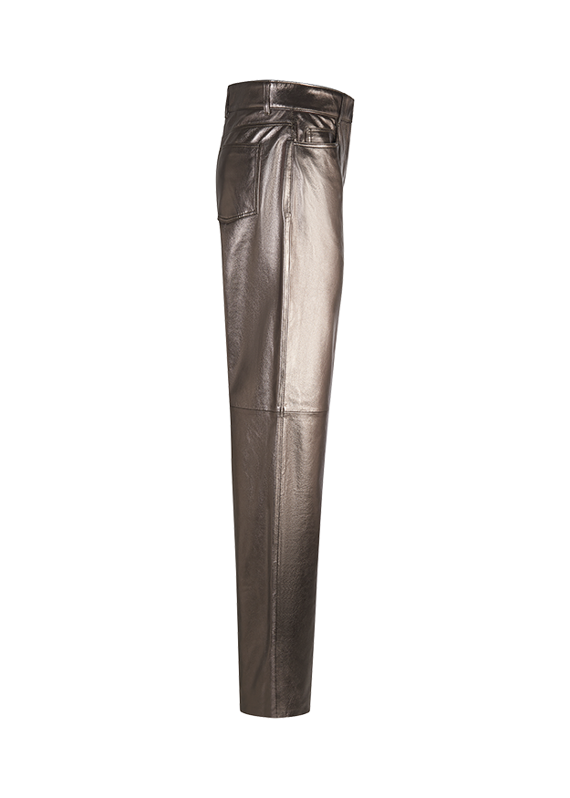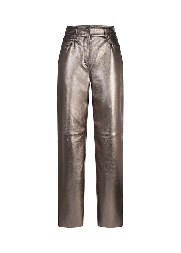 Glow & glamour! Trendstark zeigt sich die Wide-Fit-Hose nicht nur durch den angesagten Schnitt, sondern auch durch den metallischen Schimmer des Stoffes. Wir haben noch eins draufgesetzt und als Materialbasis edles Lammnappa-Leder gewählt. Ein Highlight für alle, die ihren Stil mit einem extravaganten und dennoch bequemen Kleidungsstück unterstreichen wollen.