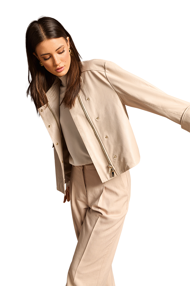 Stilvoll und sophisticated: Die weiche Lammnappa-Lederjacke besticht mit ihrem cleanem Chic, der im modischen Stehkragen, der verdeckten Knopfleiste, den Armriegeln und der einzelnen Pattentasche zum Ausdruck kommt. Die perfekte Ergänzung zu schlichten Hosen oder Röcken für einen zeitlos modischen Look.