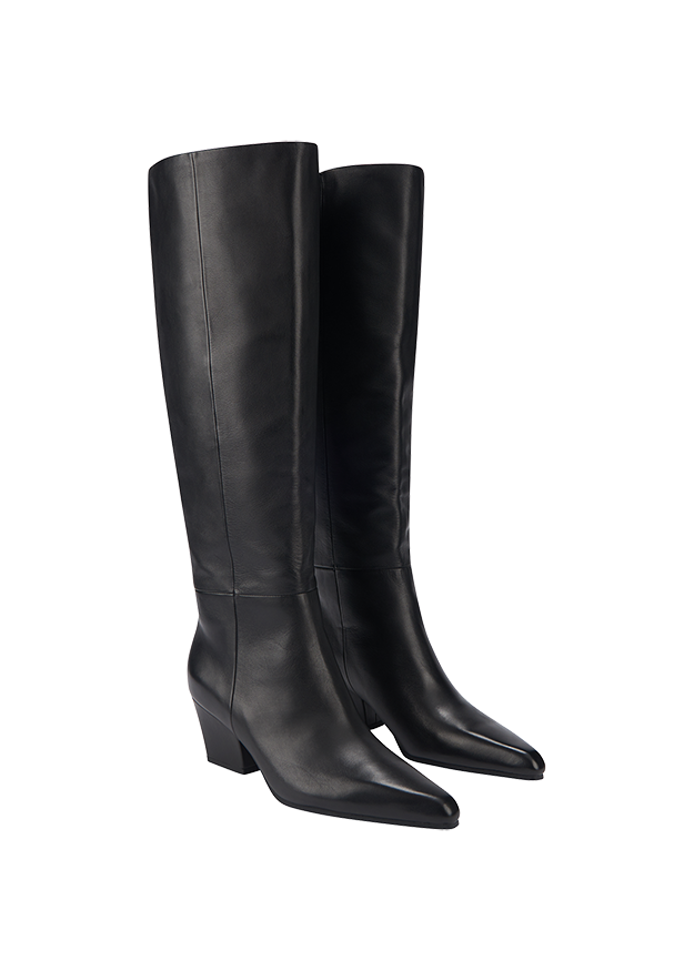 Schuhtraum: Die kniehohen Lederstiefel beeindrucken durch ihre schmal zulaufende Form und den modernen Blockabsatz. Die dünne Sohle sorgt für ein angenehmes Tragegefühl. Sehr stylish zu Kleidern und Röcken. Für stilbewusste Frauen, die Wert auf Qualität und Design legen. Kombiniere die Stiefel zu Ihrem Lieblingsoutfit und setzen Sie modische Akzente.