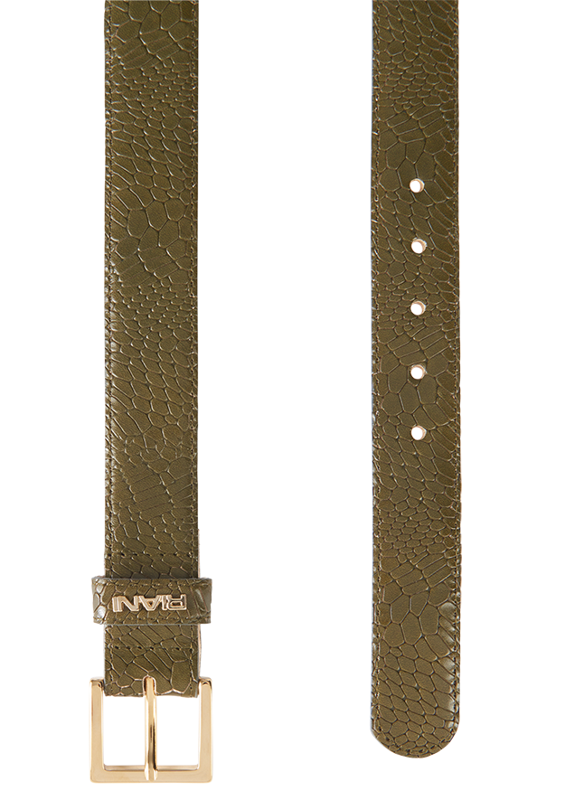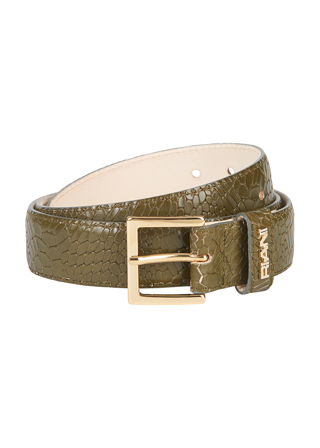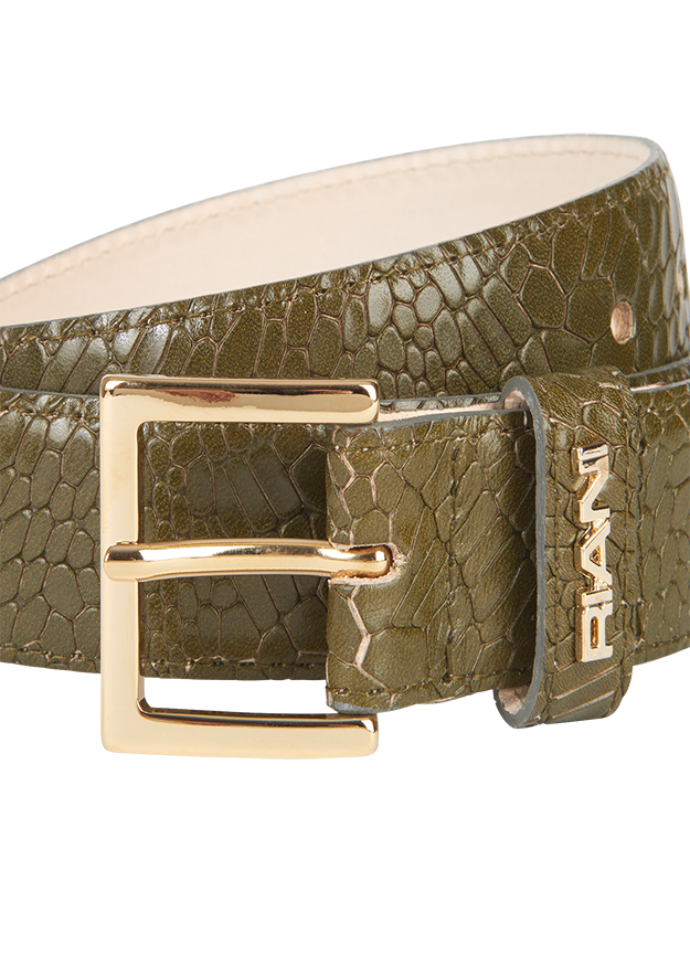 Dieser RIANI Gürtel im trendigen Krokodil-Look mit goldener Schnalle verleiht jedem Outfit das gewisse Etwas. Ob zum Kleid oder über einen leichten Strickpullover kombiniert er bringt eine lässige Coolness in Deinen Look und ist ein echtes Must-have für jede Garderobe.