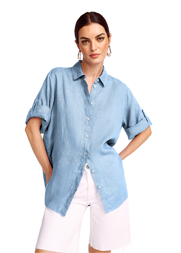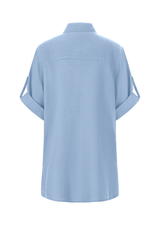 Trendige Leichtigkeit mit dieser RIANI Bluse! Die gekrempelten Ärmel lassen sich bei Bedarf ganz einfach ausrollen, während die Knopfleiste und der klassische Kragen für ein zeitloses Design sorgen. Der luftige Garment Dyed Linen-Stoff unterstreicht die Leichtigkeit und verleiht der Bluse einen lässigen, sportiven Look. Perfekt für ein entspanntes und stilvolles Auftreten!