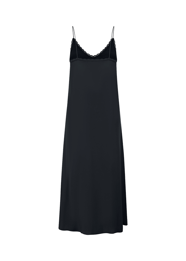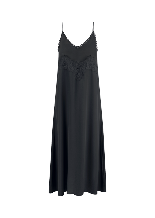 Zeitlos schön! Dieses feminine Midi-Kleid erhält seinen bezaubernden Lingerie-Look durch den luxuriösen Mix aus Viskose, Seide und zarter Spitze am Ausschnitt unter der Brust. Der lockere Schnitt sorgt für einen entspannten, eleganten Fall. Kombiniert mit maskulin inspirierten Pieces wie einem Blazer entsteht ein modischer Kontrast, der den Look weich und zugleich stilvoll macht. Ein RIANI Must-have!