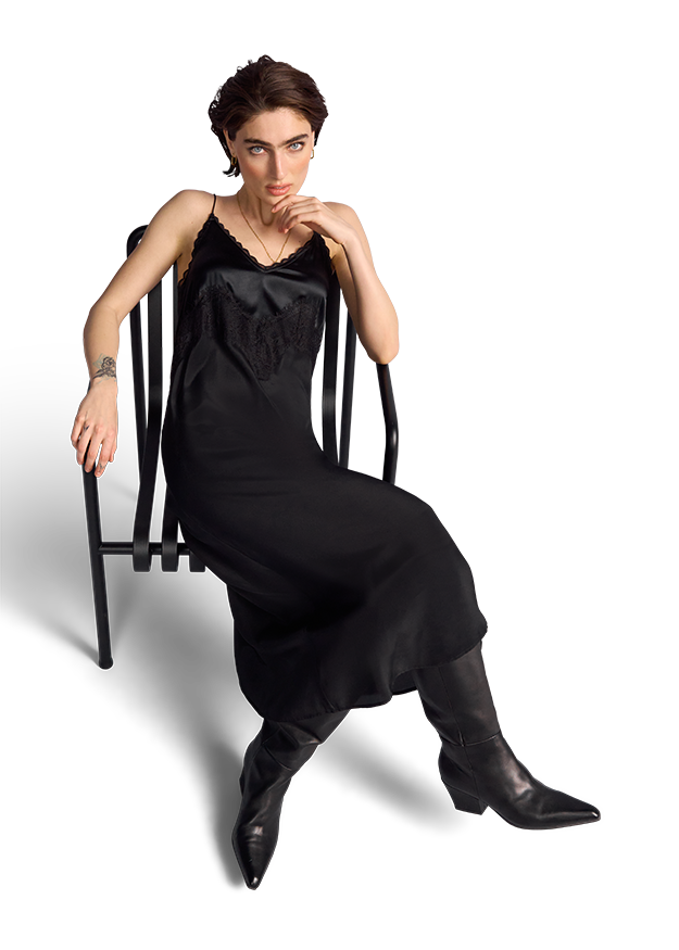 Unser Model ist 178 cm groß und trägt Größe 36.