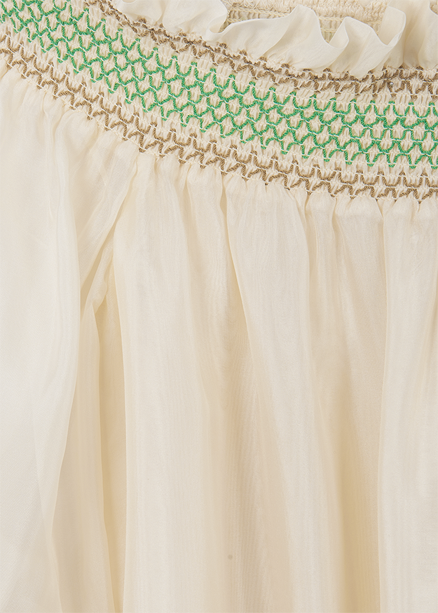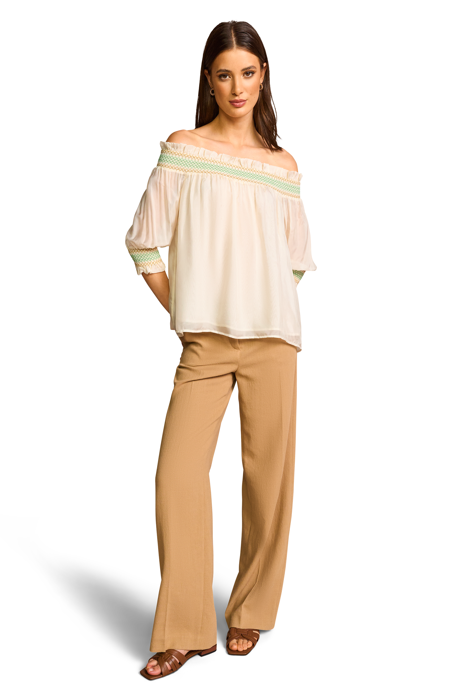 Die Off-Shoulder-Optik bleibt auch in diesem Sommer ein unverzichtbarer Trend bei RIANI. Besonders in Kombination mit luftigem Chiffon aus Seide und Viskose verleiht sie femininen It-Pieces eine elegante Leichtigkeit. Dezente Rüschen an Ärmeln und Saum unterstreichen den zeitlosen Charme und machen diese Bluse perfekt für stilvolle Auftritte.