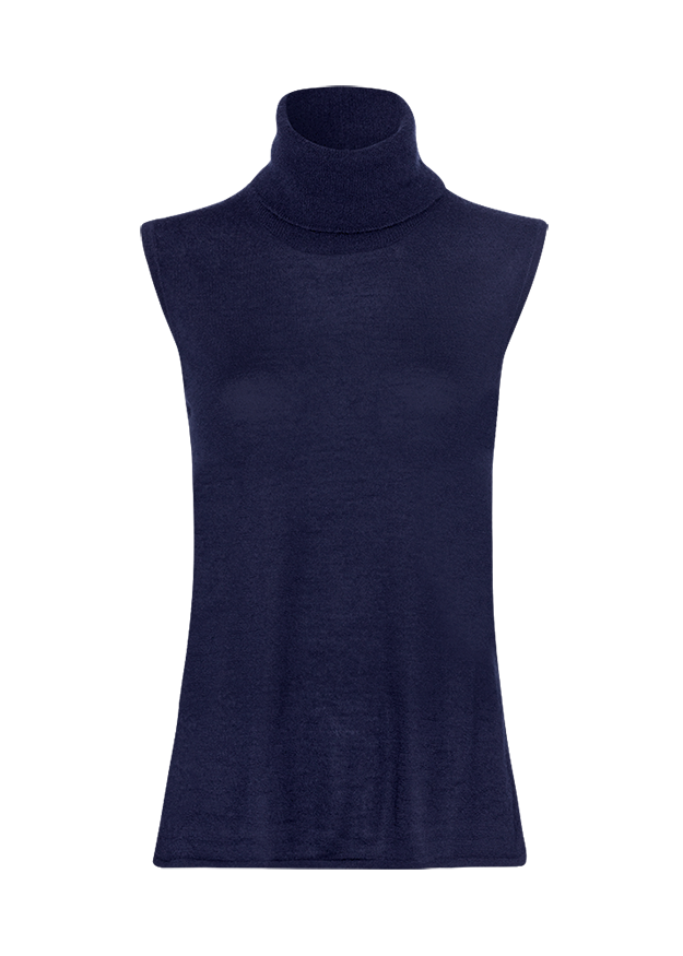 Ein weich fließendes Top aus hochwertigem Kaschmir mit stylishem Stehkragen, das zurückhaltende Eleganz ausstrahlt. Durch den ärmellosen Schnitt passt das Top perfekt zu allen Looks oder kann als Layering Piece unter leichten Jacken & Blazern getragen werden.