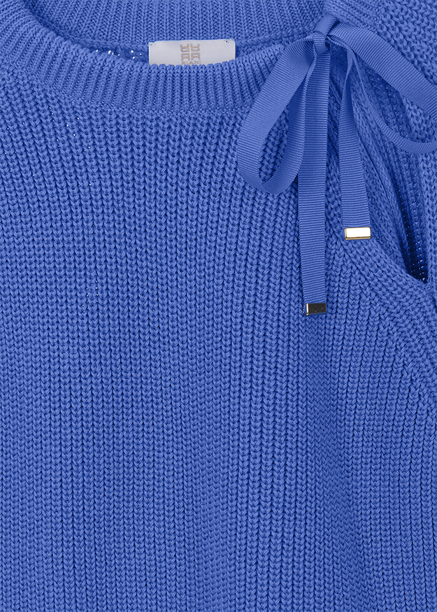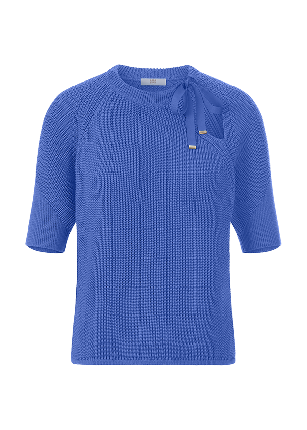 Unsere Wahl zwischen Chic und Bequemlichkeit lautet: Wir nehmen beides! Verspieltes Schleifendetail und Cut-Outs treffen auf den klassischen RIANI Pullover aus hochwertigem Organic Cotton – genau das Richtige für den Frühling. Unser Lieblingslook dazu ist eine gleichfarbige Hose für einen stilvollen, monochromen Fashion Look.