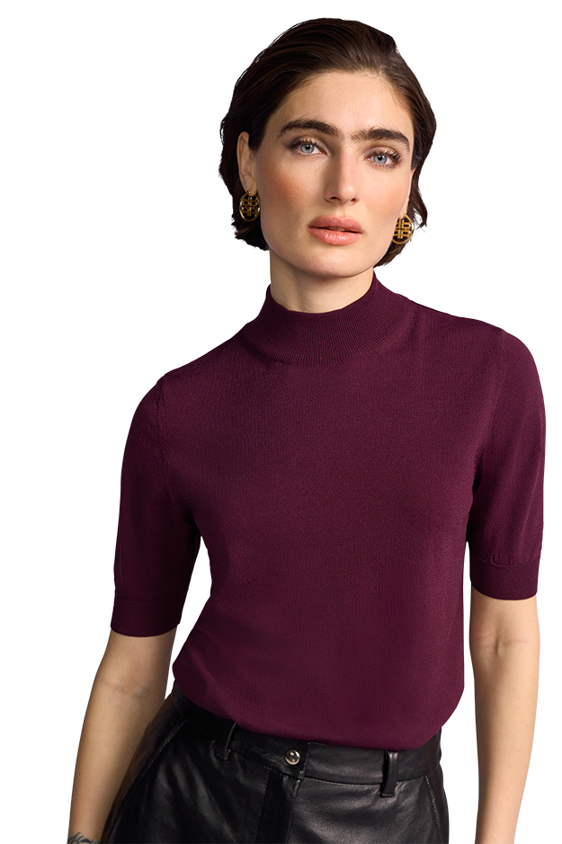 Der RIANI Pullover aus kühlem Viskosegarn besticht mit kurzem Ärmel und elegantem Rollkragen. Vielseitig kombinierbar – ob unter Blazer, Kleid oder solo zu Hose und Rock. Eine lässige Alternative zu Bluse und Shirt für stilvolle Alltrags- und Business-Looks.
