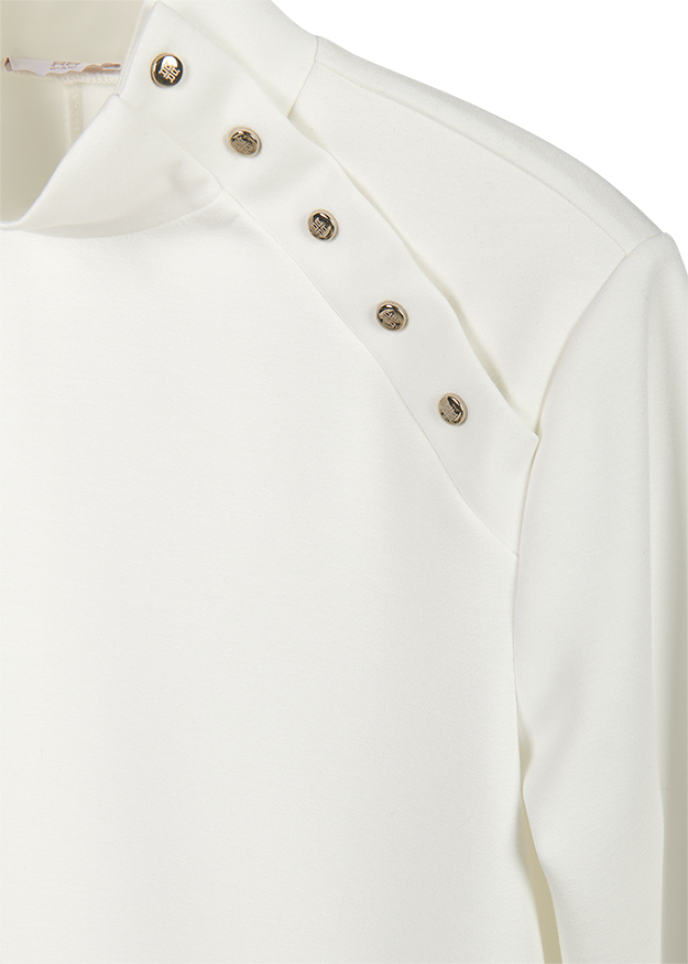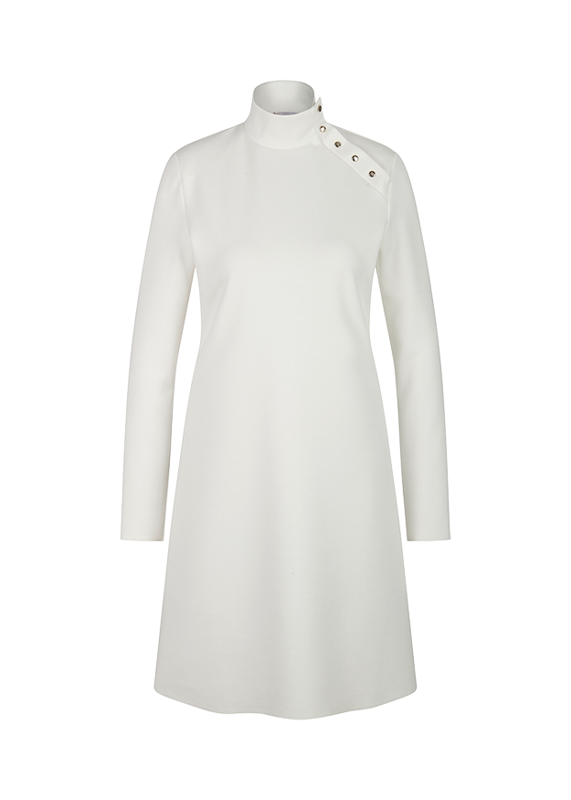 Ein moderner, sportiver Chic zeigt sich in diesem Scubakleid. Den modischen Akzent setzt, in dem ansonsten cleanen Piece, die diagonal verlaufende Knopfleiste an der linken Schulter. Entspannten Tragekomfort verspricht der schöne Jersey mit seiner wunderbar weichen Oberseite. Mit Sneakern und einer schicken Tasche steht ein toller Look in wenigen Minuten.