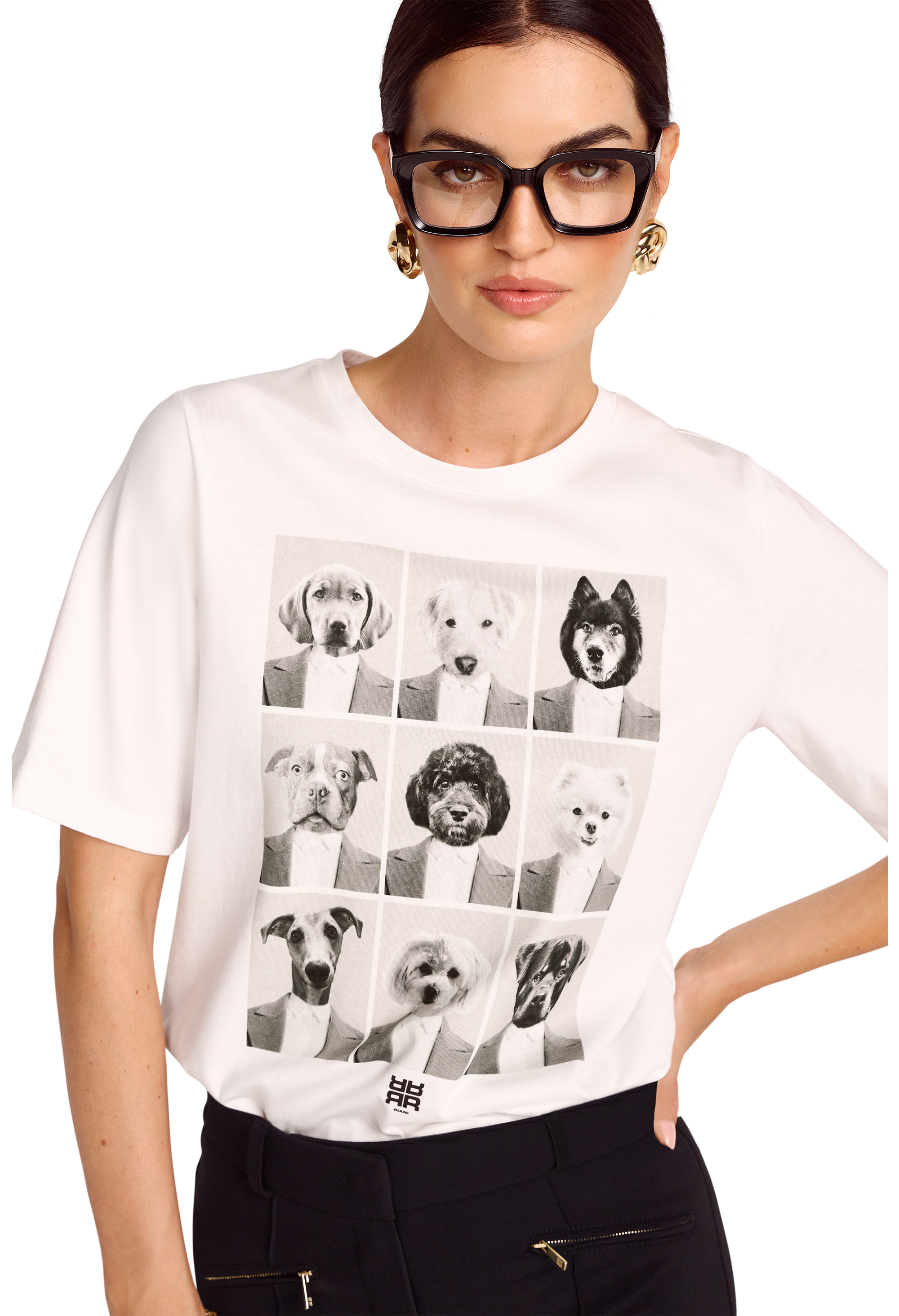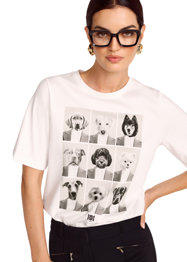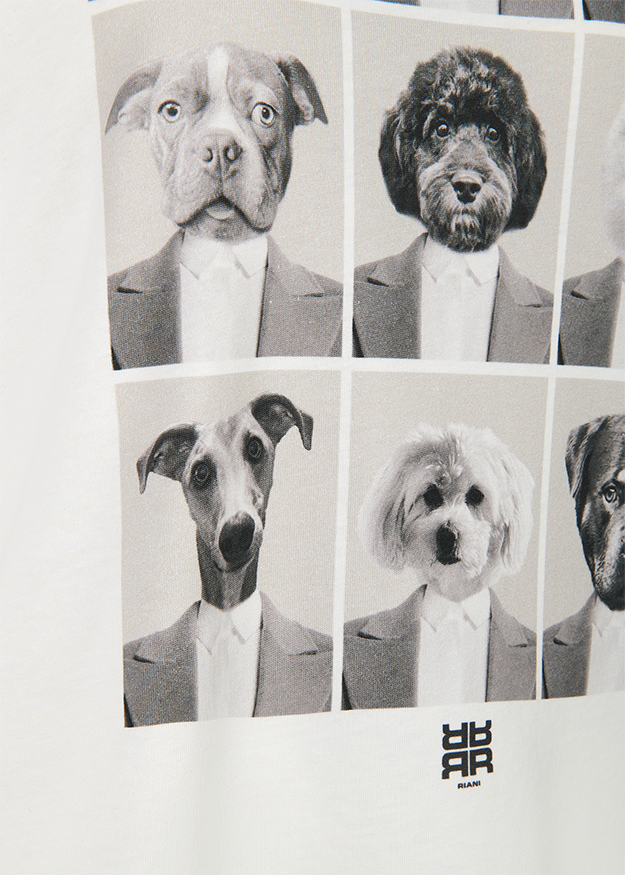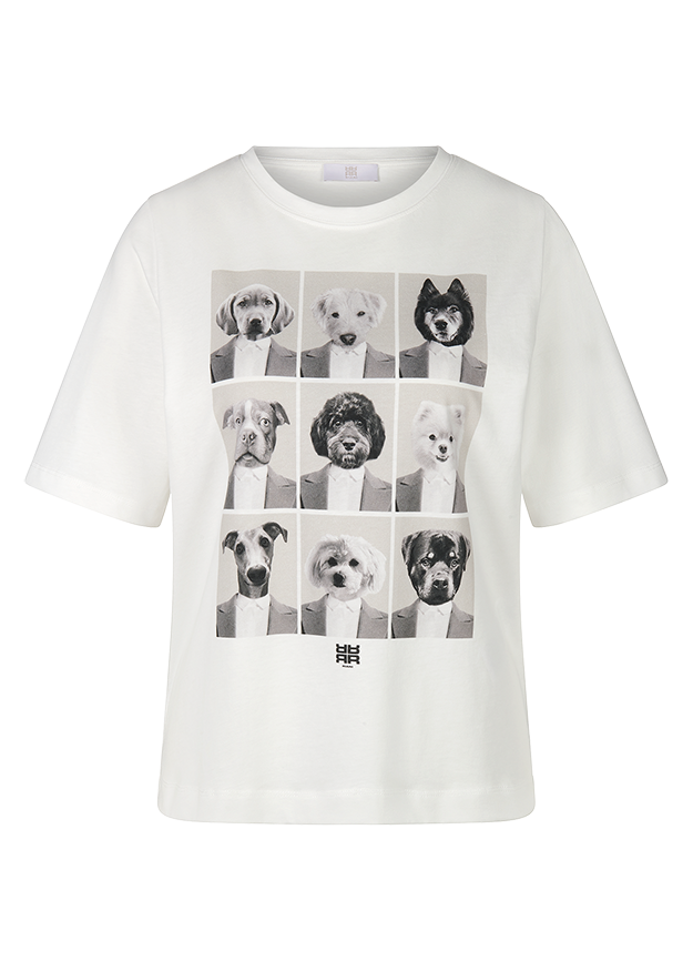 Für RIANISTAS und alle, die auf witzige Pieces stehen: Simba – hier in der Mitte zu sehen – ist ein wichtiges Mitglied der RIANI-Familie und bei diesem Kurzarm-Shirt Inspiration für den fröhlichen Print. Damit ist das Basic ein tolles Styling-Piece für lässige oder sportive Looks. Tragekomfort bietet der feine Baumwolljersey aus nachhaltiger Produktion.
