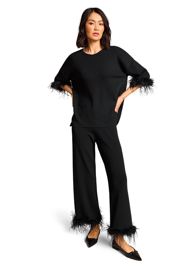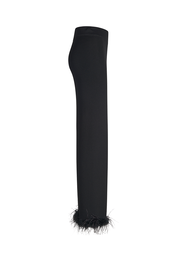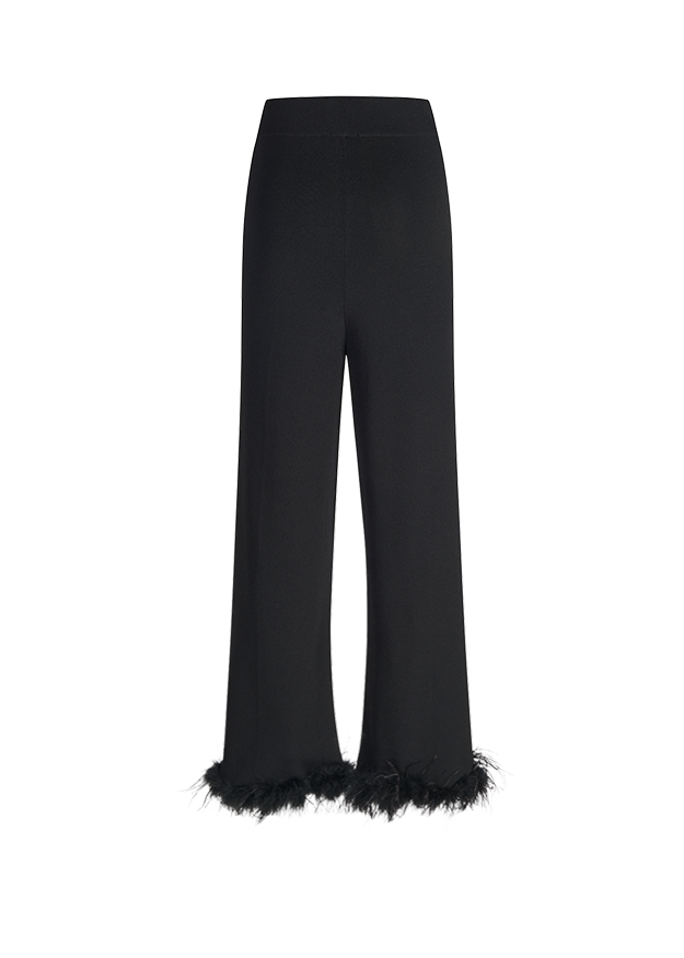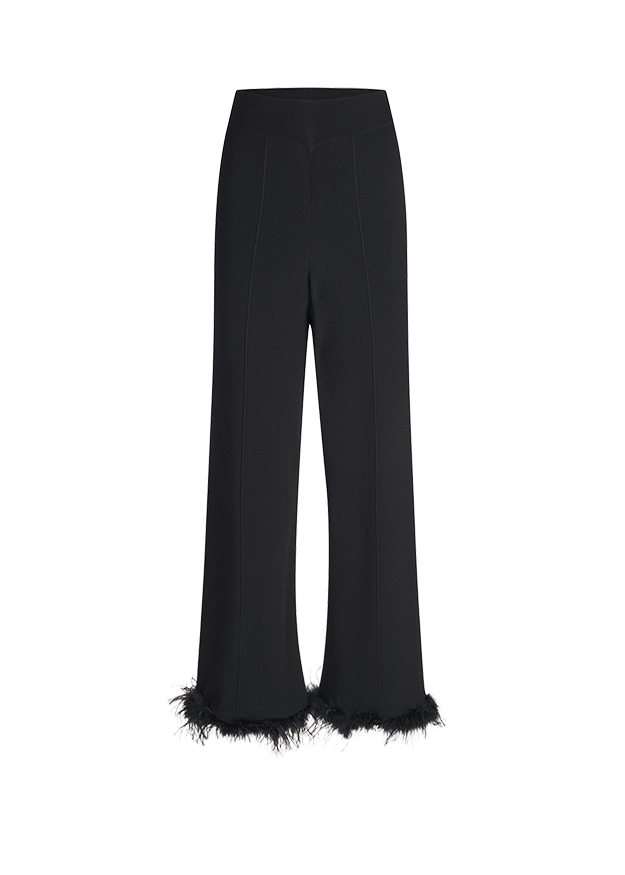 Mit dieser stylischen Slip on Pants wird jedes Outfit zum Hingucker. Die abnehmbaren Federn am Saum setzen verleihen ihr eine raffinierte Note. Der komfortable Schnitt bietet Bewegungsfreiheit und das weiche Material aus Creppy Viscose Knit sorgt für ein angenehmes Tragegefühl. Kombiniert mit einer eleganten Bluse oder einem schlichten Oberteil, ist diese Hose ein echtes Statement-Piece für modische Auftritte.