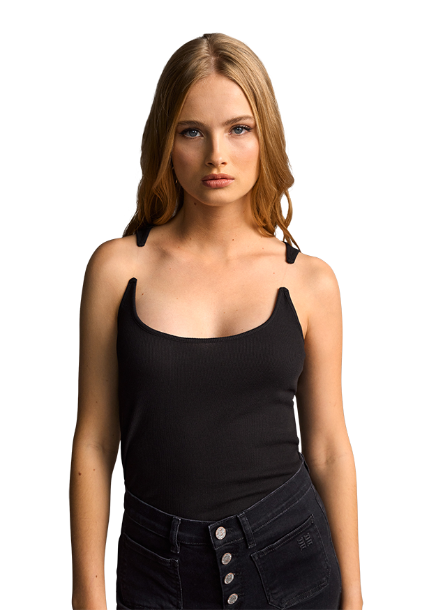Dieser RIANI Top mit U-Ausschnitt und filigranen, fadenähnlichen Trägern ist ein wahres Basic mit dem gewissen Etwas, das in keinem Kleiderschrank fehlen darf. Der figurbetonte Schnitt sorgt für eine feminine Silhouette, während die Mischung aus Baumwolle und Elasthan für einen angenehmen Tragekomfort sorgt. Ideal für den Alltag, lässt sich das Top sowohl solo tragen als auch perfekt als Layering-Piece kombinieren. Ein echter Fashion Allrounder!