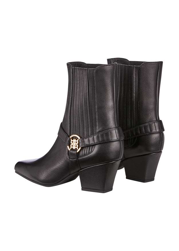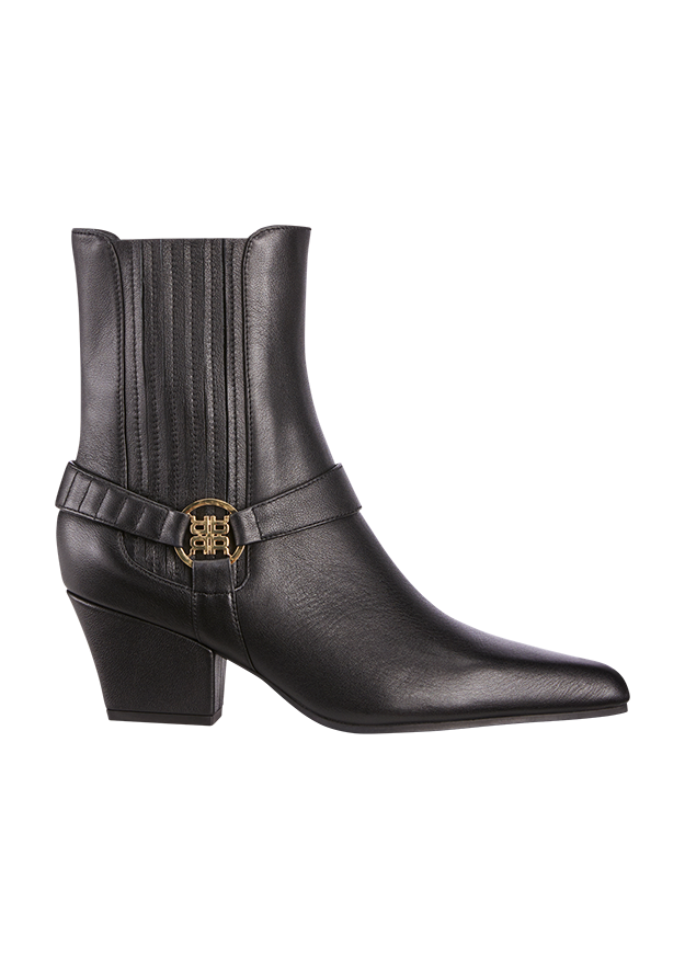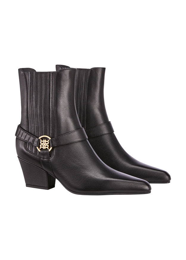 Klassik trifft Coolness! Dieser schwarze RIANI Leder-Boot ist ein stilvoller Allrounder mit Charakter. Die elegante Silhouette mit spitzer Form und mittelhohem Blockabsatz verleiht jedem Outfit eine selbstbewusste Note – vom Business-Look bis zum City-Chic. Raffinierte Details wie der Gummieinsatz mit aufgestepptem Lederbesatz und die goldene Logo-Schnalle setzen edle Akzente und machen den Schuh zu einem echten Statement-Piece. Hochwertig verarbeitet und zeitlos im Design – dieser Boot steht für Stil, Komfort und souveräne Eleganz.