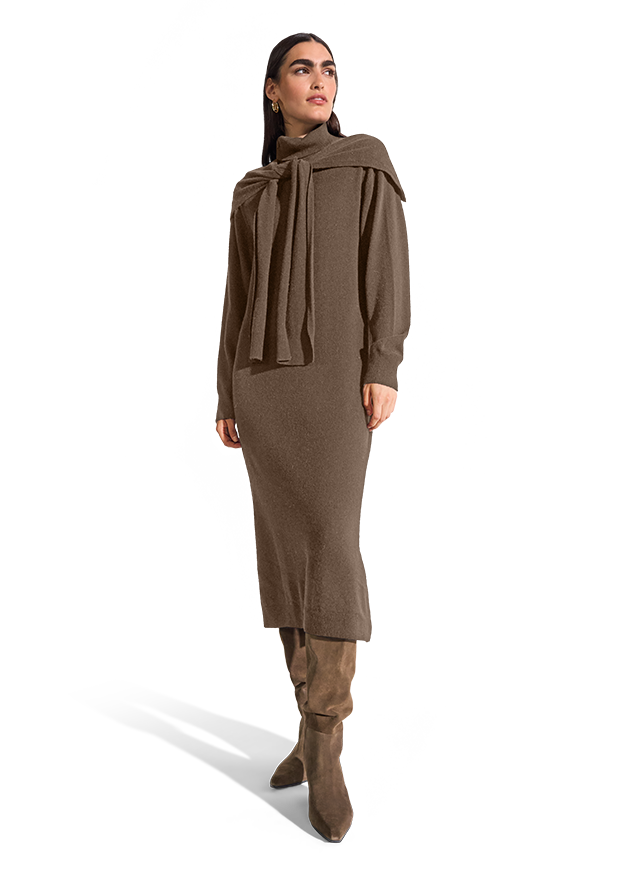 Dieses Strickkleid ist so wandelbar wie Dein Style: Ob lässig über die Schultern gelegt oder charmant um die Taille getragen – der integrierte Überwurf verleiht Deinem Look das gewisse Etwas. Der weiche Materialmix sorgt für kuschelige Wärme und eine edle Optik, die Dich bei jedem Anlass stilsicher begleitet. Ein echtes Highlight für alle, die Komfort und Design lieben.