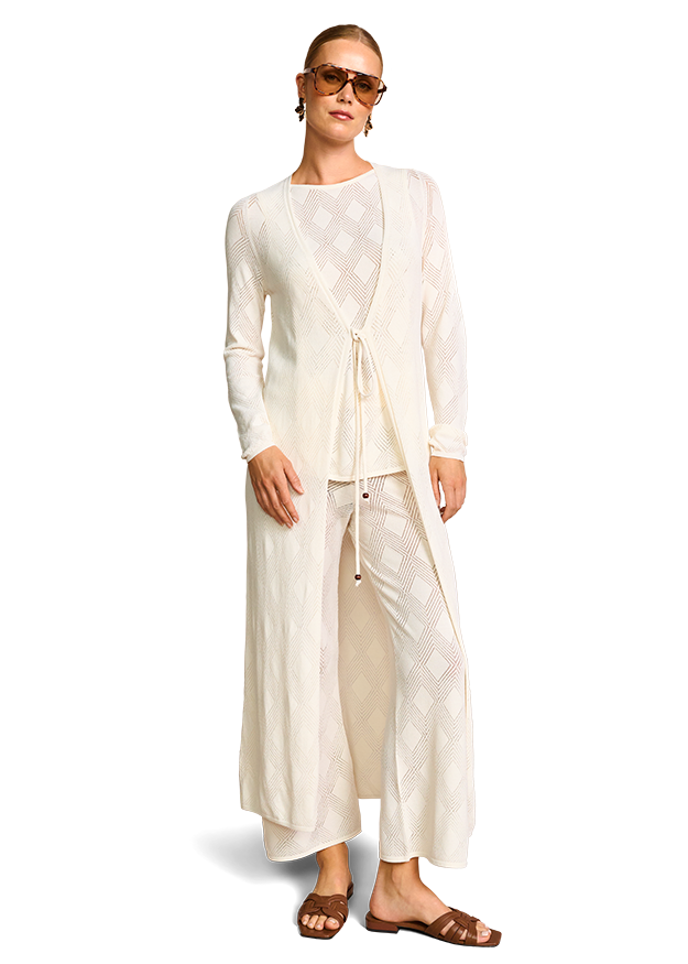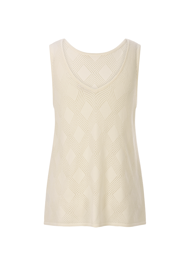 Strick mal anders – aus leichtem, Creppy Viscose Knit! Das luftige Lochstrickmuster macht das Top perfekt für Gartenpartys, den Stadtbummel oder den Strand. Dieses It-Piece verleiht Deinem Outfit eine entspannte Note. Kombiniert mit einer schlichten Hose und Sandalen, wird es zum idealen RIANI Sommerlook!