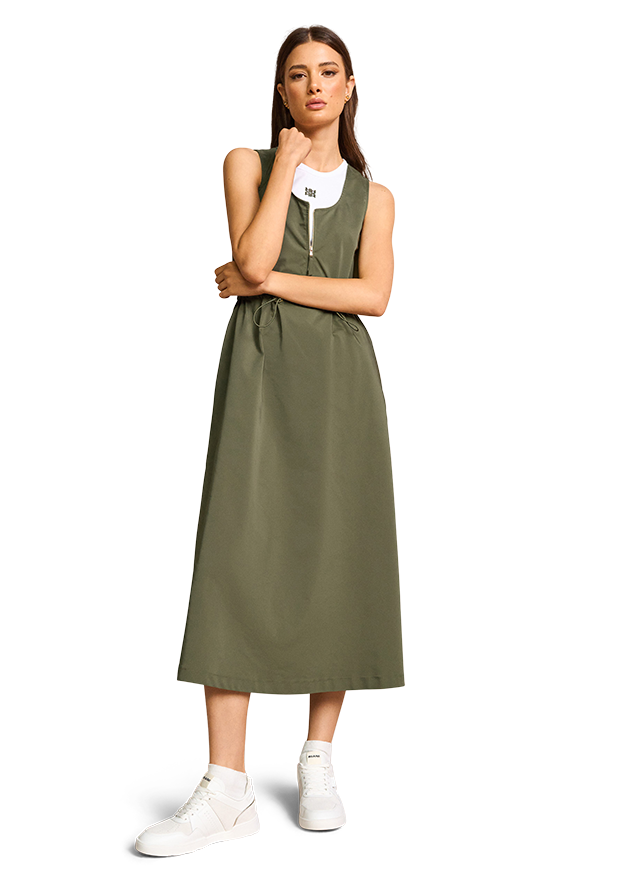 Chic und schön! Das RIANI Midi-Kleid aus recyceltem Polyester ist ein echter Hingucker. Die feminine Silhouette wird durch den verstellbaren Bund an der Taille perfekt betont. Trage ein weißes Top darunter und stimme die Schuhe harmonisch ab – so wird Dein Outfit perfekt abgerundet. Ein echtes Fashion Highlight aus der "Ready-to-Wear"-Kategorie!