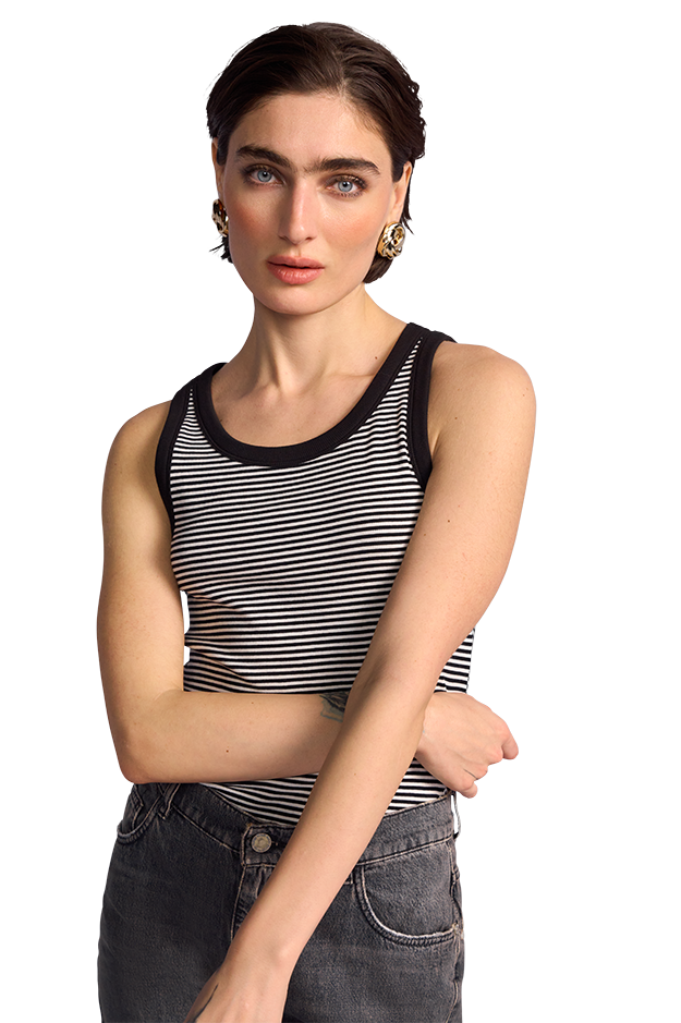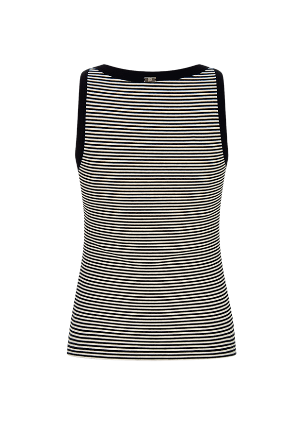 Streifen All Over! Dieses Top mit dem zeitlosen Streifen Muster ist ein Basic, welches gut als Layering Piece geht oder auch alleine. Seitlich steht RIANI als Schrift und das Top hat einen U Ausschnitt. Ein tolles Basic auf das man im Kleiderschrank nicht verzichten möchte. Aus Baumwolle und Elasthan also nicht nur super bequem sondern auch sehr stretchy.