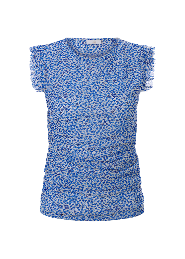 Love is in the air! Unser RIANI Top mit Herz-Print ist ein echter Allrounder für jeden Anlass. Der weiche Stoff, das verspielte Herzdessin und die zarten Rüschen am Ärmelsaum verleihen dem Fashion Piece eine besonders feminine Note. Kombiniere es lässig mit Jeans oder etwas eleganter mit einem kurzen Rock. Mit der passenden Handtasche rundest Du das Outfit stilvoll ab – ein hochwertiger Look, der immer überzeugt!