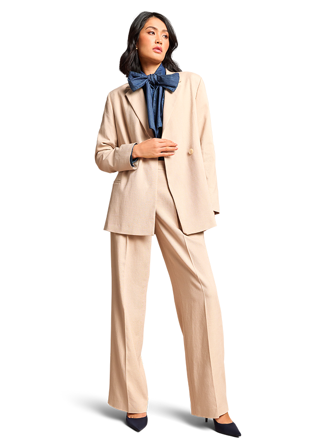 Unsere Wahl zwischen Chic und Bequemlichkeit heißt: Wir nehmen beides! Schließlich kann man nie wissen, was der Tag so bringt. Die trendige Wide-Fit-Hose mit Bügelfalten und der feinen Struktur begleitet dich von langen Büro-Meetings über einen Gang durch die City bis zum abendlichen Event. Für den fließenden Fall des Stoffes sorgt der sehr hohe Viskoseanteil.