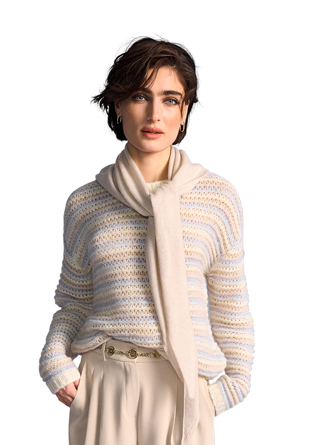 Dieser RIANI Pullover aus einem edlen Alpakamix überzeugt mit einem sanften Streifenmuster, das jedem Outfit eine frische Note verleiht. Der lockere Schnitt und die feine Strickqualität garantieren höchsten Tragekomfort und eine stilvolle Silhouette. Perfekt, um an kühlen Tagen feminine Eleganz mit gemütlicher Wärme zu verbinden. Ein Must-have für jede moderne Garderobe.