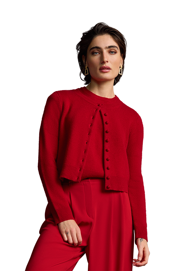 Elegant appearance guaranteed! This RIANI cardigan in a classic cut made from a high-quality cashmere blend, consisting of merino wool and cashmere, gives you a luxurious feel. Tip: fasten only the top button and leave the other buttons undone for a casual, trendy look. Combined with the matching half-sleeved knitted jumper in the same colour, the look is a real eye-catcher!