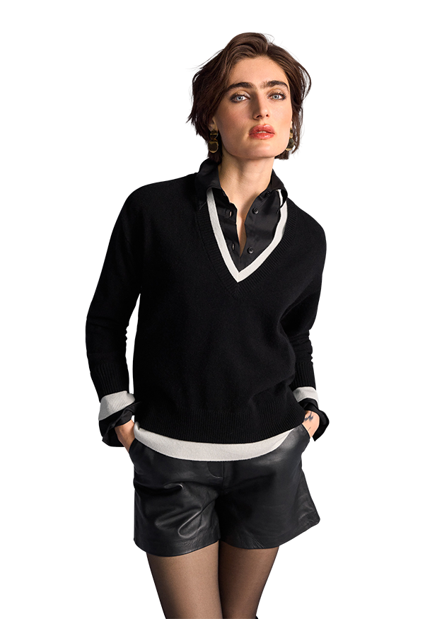 This RIANI sweater, crafted from a fine cashmere blend, combines exceptional comfort with a refined look. The delicate material mix provides warmth without bulk and adds a subtle touch of luxury to any outfit. Perfect for cozy moments as well as stylish everyday wear – an essential premium piece for RIANISTAs who value quality and comfort.