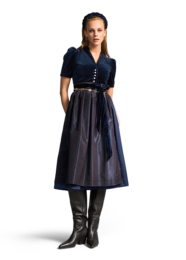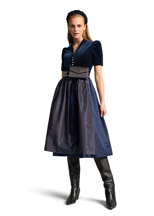 The RIANI dirndl. The high-quality velvet bodice is decorated with mother-of-pearl buttons and the puff sleeves create the ultimate Oktoberfest look. A real traditional highlight that perfectly combines tradition and modern style.