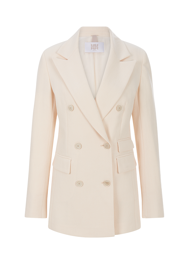 A must-have from RIANI for style-conscious women! The double-breasted women's blazer in the soft beige shade ‘Dune’ made from a high-quality viscose blend with a striking texture is a real fashion piece and ideal for an elegant, summery look.