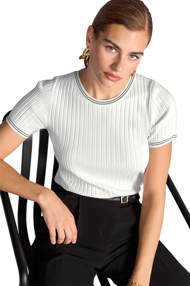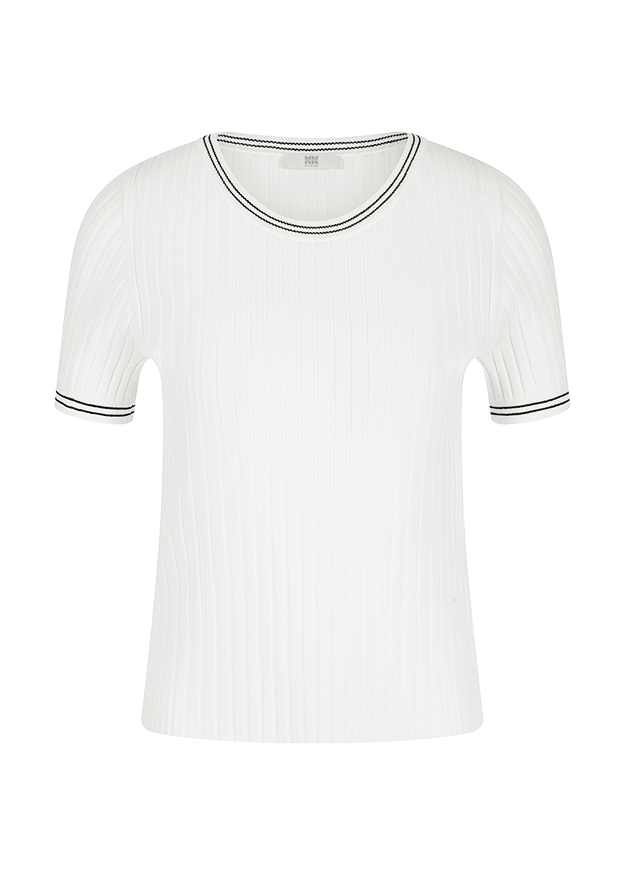 Your new favourite basic! This versatile RIANI knitted shirt made from a high-quality blend of viscose and polyamide is a real all-rounder for your wardrobe. Whether you wear it as a layering piece under a blazer, combine it with a cardigan or style it solo - it suits every look and occasion. The stripes on the collar and sleeves give the simple design a sporty touch and make it a piece that will impress time and time again.