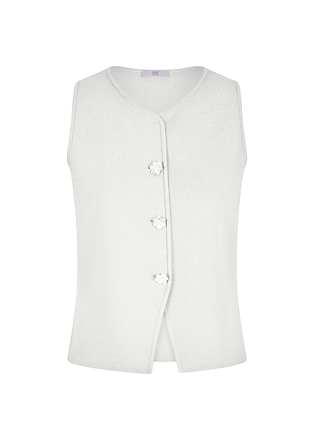 This loose waistcoat from RIANI combines casual knitwear with elegant, silver-coloured decorative buttons for a cool twist. With a straight cut and simple round neckline, it is extremely comfortable to wear. Combined with suit trousers, it is the perfect fashion piece for a wide range of occasions - always stylish and well-dressed.